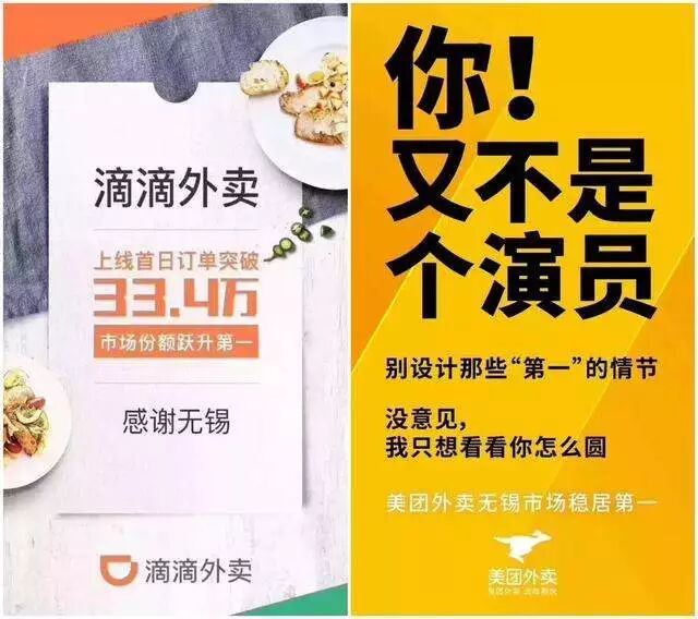 在无锡的街头,滴滴外卖骑手们挂起了“滴滴外卖,月入过万,用我必胜”的宣传横幅。美团外卖也不甘示弱打出了“除滴灭饿,商渠共赢”的宣言。虽然上线初期滴滴外卖面临上线商家少等弊端,但在大手笔补贴之下,滴滴外卖成绩喜人。