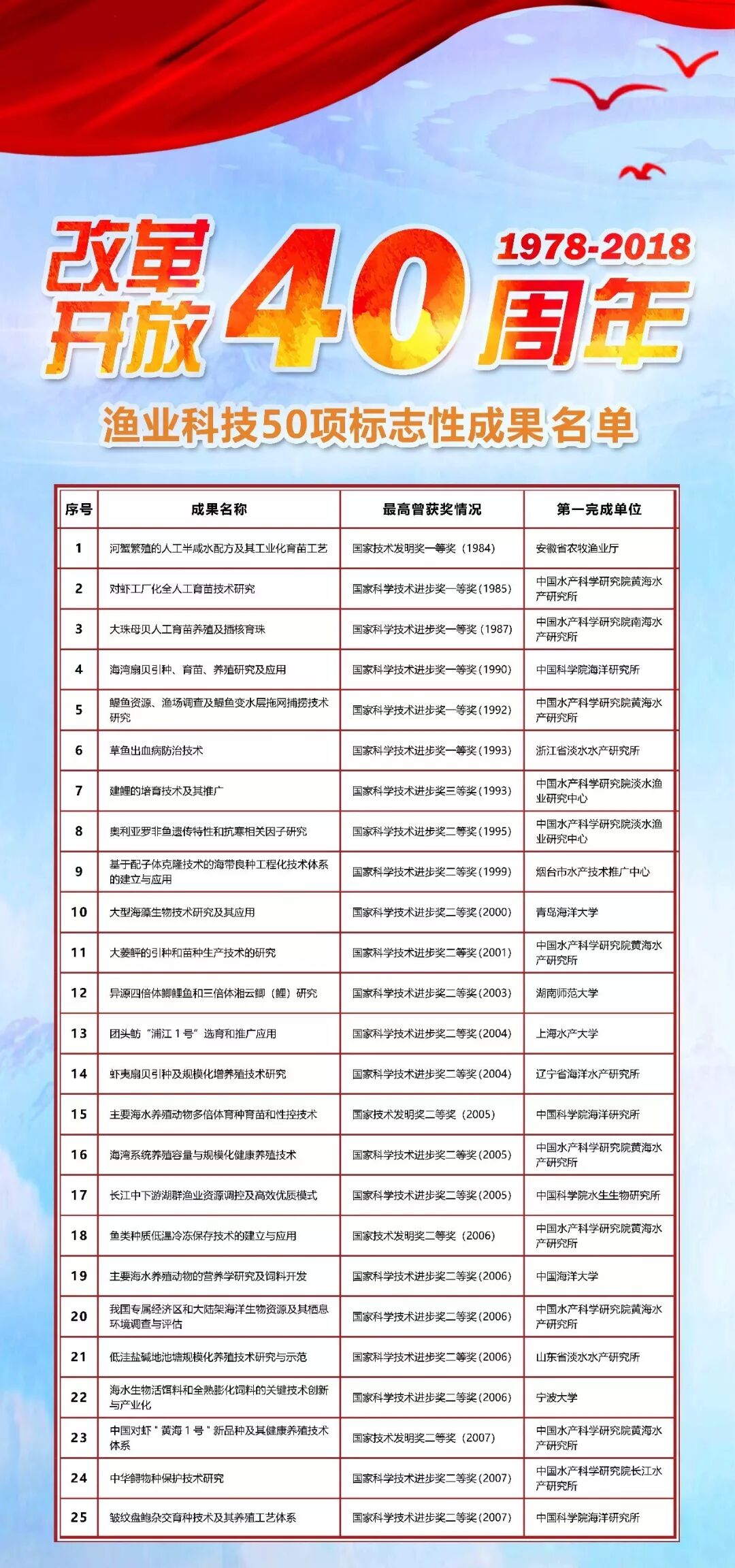 - 系列宣传丨改革开放40周年渔业科技50项标志性成果