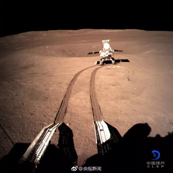↑图为“嫦娥四号”拍的“玉兔二号”全身照。来源:央视新闻