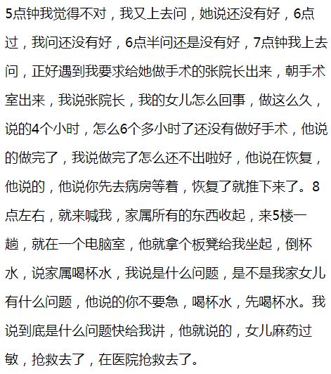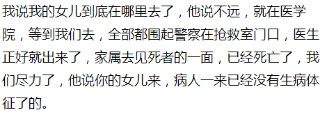 当时情况还是比较危急,我们全科的医务人员都在极力地,动用我们所有的医疗资源进行抢救。当时实际上院方的心情是这样的,因为病情比较严重,如果说她当时看到当时的情景,怕她情急受不了,所以尽可能让她回避了一下。(这个是你们院方的规定 还是当时医务人员作出的规定)这个是我们考虑,不是院方的规定。