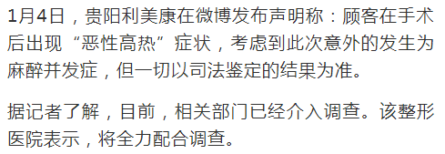 - 为杭州交通91.8综合发布 来源:中国新闻网 已获授权转载 图自新京报 版权归原作者所有 导语 1月3日下午1点,贵阳19岁大二女学生夏某某被推进贵阳利美康整形外科医院手术室进行隆鼻手术,原本4小时