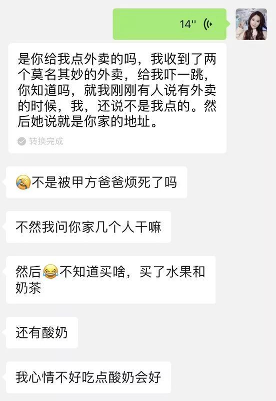 他知道我在工作不仅没打扰我,还悄悄给我点了奶茶和水果,我收到外卖的时候一脸懵逼,我说你送错了不是我点的,对方说:就是给你的。