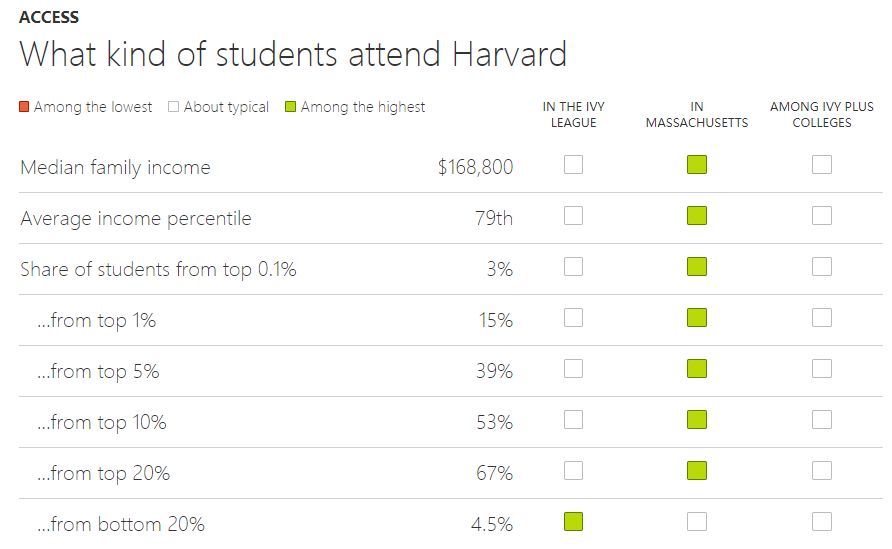 图:哈佛学生的家庭收入、就读名校高中等数据