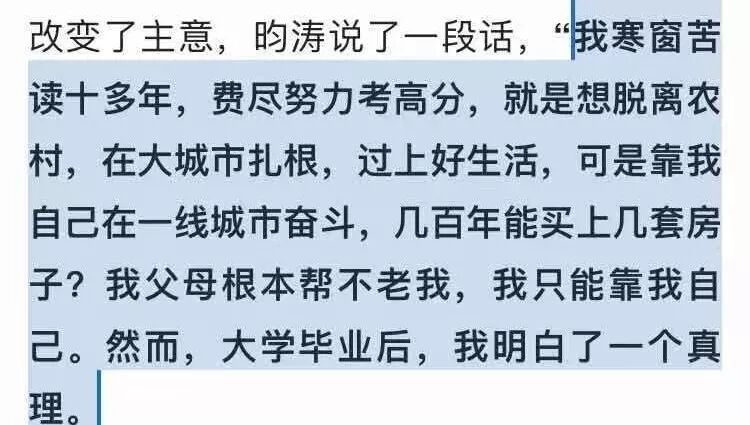 原博主认为这种男人的初心,令人胆寒。我倒觉得可以理解,希望通过婚姻改变命运,男女都有,我们不能只理解姑娘想嫁有钱人的心态,换一个性别,就不能接受了。