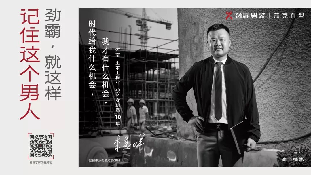 今年,劲霸男装将把镜头对准了一群从未被聚光却不容被忽视,始终奋斗也从未放弃的男人他们是全国各地成千上万的普通创业者的缩影,是无数个普通家庭里的顶梁柱,虽然普通,但绝不平凡。