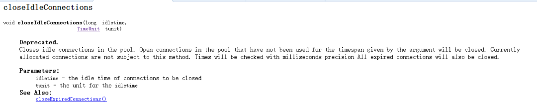 这段代码表示调用httpClient的getConnectionManager,然后利用closeIdleConnections进行关闭空闲连接,5代表是五秒(不知道解释的对不对)。