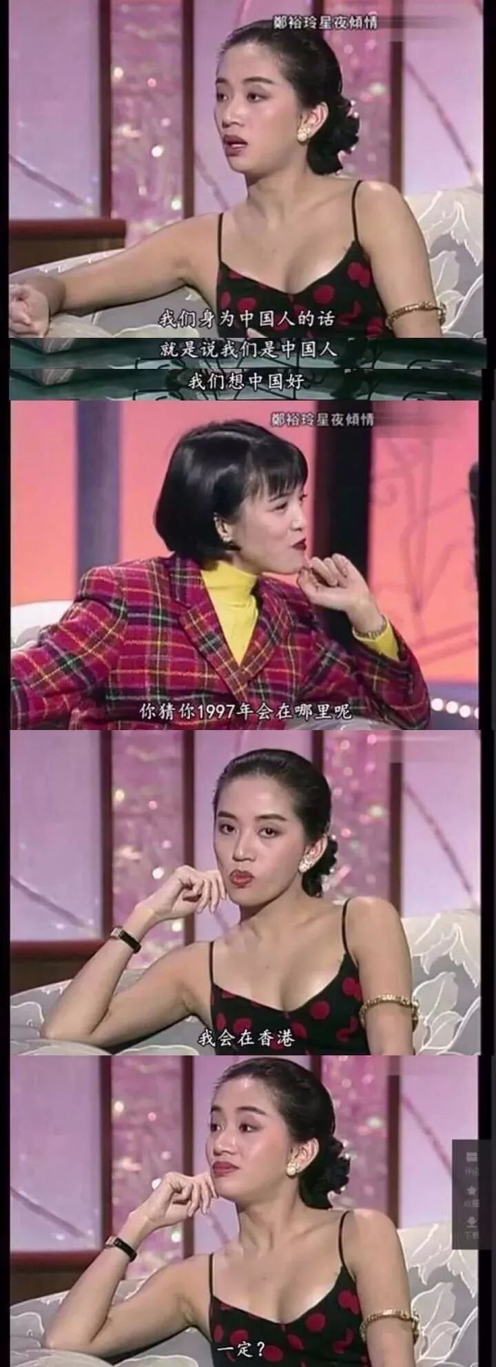香港回归之前,很多艺人、商人都选择了移民。为什么选择移民?因为担心香港回归后自己会被清算旧账。然而,当时的著名天后梅艳芳却不这么想,她在电视上公开称自己一定会留在香港,称自己是中国人!梅艳芳多么爱国,请看下图他在电视台、报纸上接受采访时的表态。