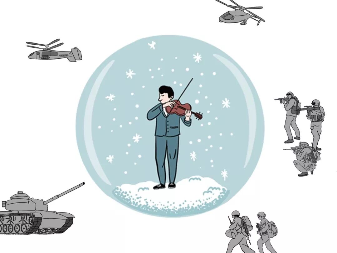 其实我也有自己的答案。年轻的时候在中东采访,我眼看着开罗从一个挤满游客的旅游城市,变成坦克沿街巡逻的动乱状态。那时候拍出来的照片,几乎所有人脸上都挂着恐慌。可是许多年过去了,我印象最深的并不是那份恐慌,而是一段音乐。当时住在尼罗河边,我抱着膝盖躲在楼顶的小房间里,窗户外面就能听得到轰隆的巡逻直升机的声音,还有远处的枪声,但是仔细听,我听到一个人在练琴。是的,当生活的一切都被打破了,没有了自由,没有了安稳,没有了希望,有个人依然坚持每天例行的练琴。