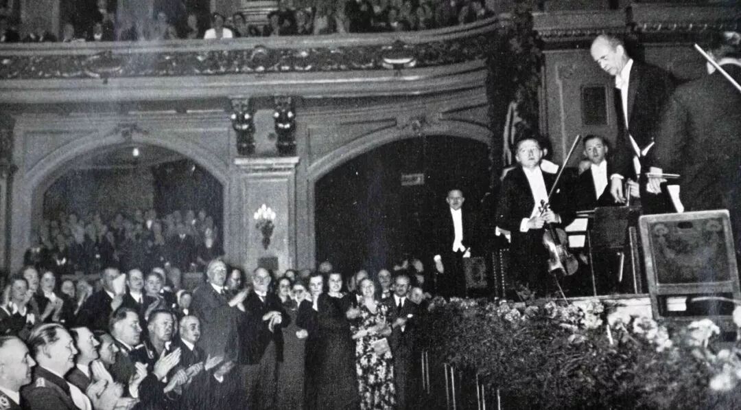 热衷古典乐的希特勒经常去参加富特文格勒的音乐会,图片左三为希特勒。一个有趣的细节是,演出结束后,时任纳粹德国宣传部长的戈培尔上前与富特文格勒握手,在当时的镜头记录下,指挥家草草结束了这场寒暄,旋即扭头面向自己的乐团,下一个镜头里,刚刚握过的手里,攥着一副用来擦手的手帕 图源picture alliance / United Archiv/dpa