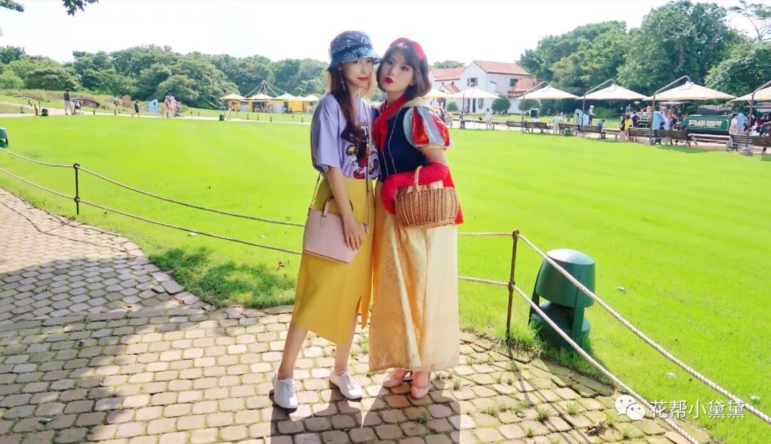 还偶遇了美丽的白雪公主👸欧妮,我们两个穿了黄色的裙子👗。