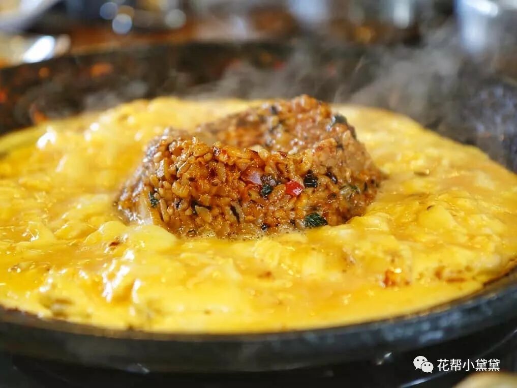 吃得差不多就会有人帮你现做汉拿山炒饭啦,服务员会在锅里放米饭,芝士和海苔,把炒饭堆成火山模样,中间蛋浆融合芝士倾泻而下,就像火山爆发一样!可以说非常生动啦~汉拿山炒饭不仅模样可爱,味道也是极美味的。