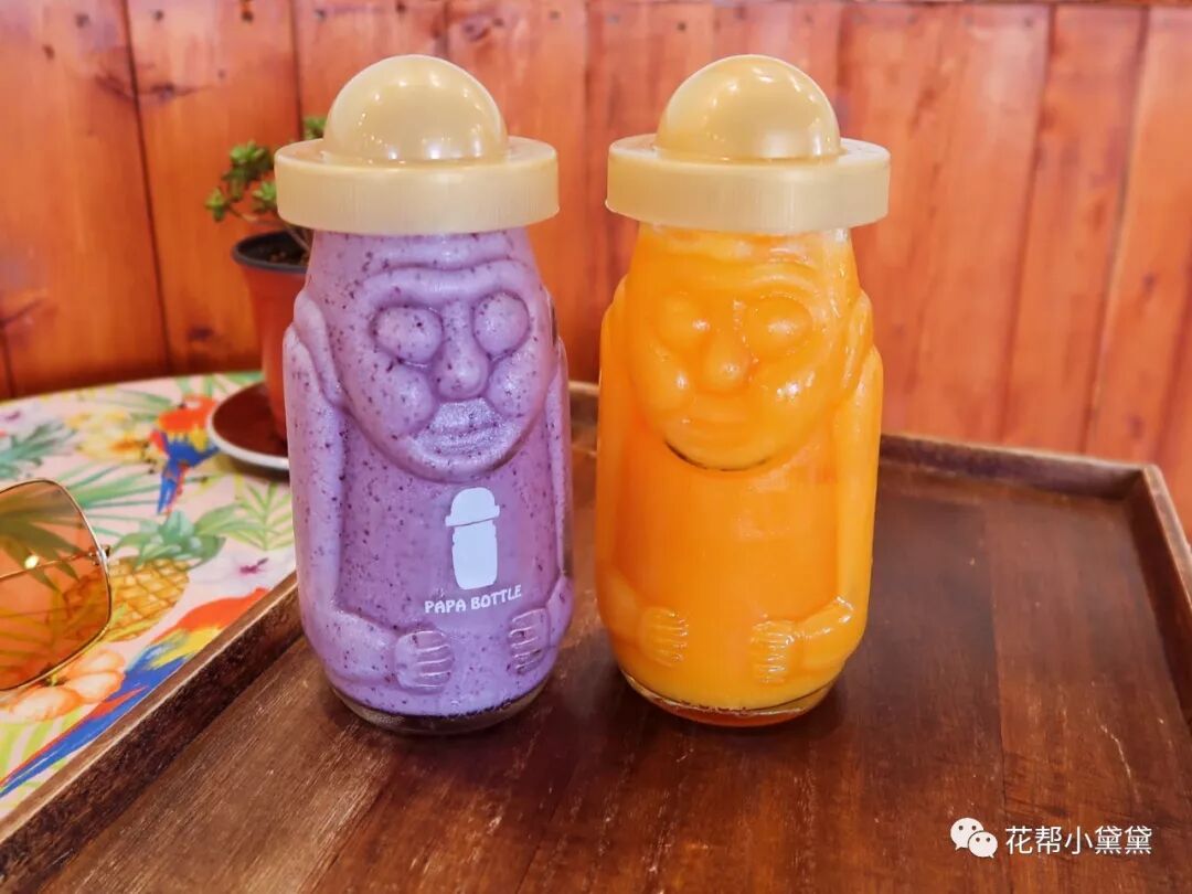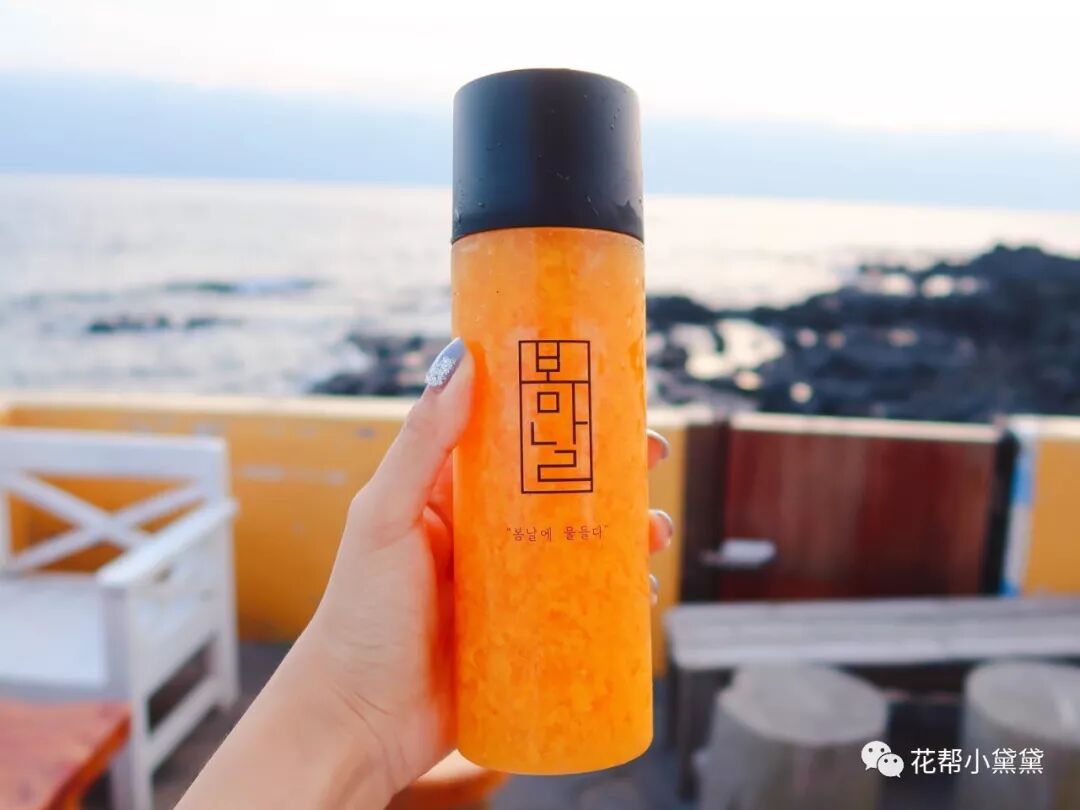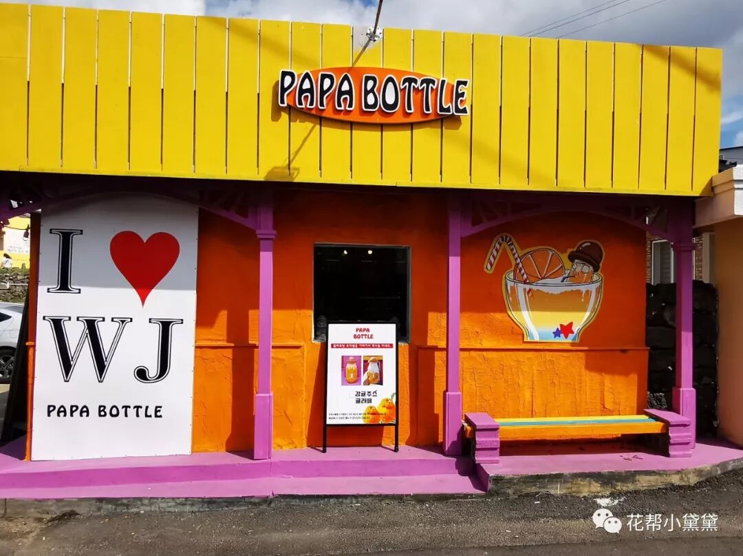 步行去海边的路上汗水滑过脸颊,但也有凉风穿过脖颈,在济州岛总是会无意间发现这种让人忍不住想进去避暑的饮品店,老远就看见了明黄色PAPA BOTTLE的招牌,“石头爷爷”橘子果汁造型超级萌,果汁酸甜可口,即刻缓解了炎炎日光的倦燥感。
