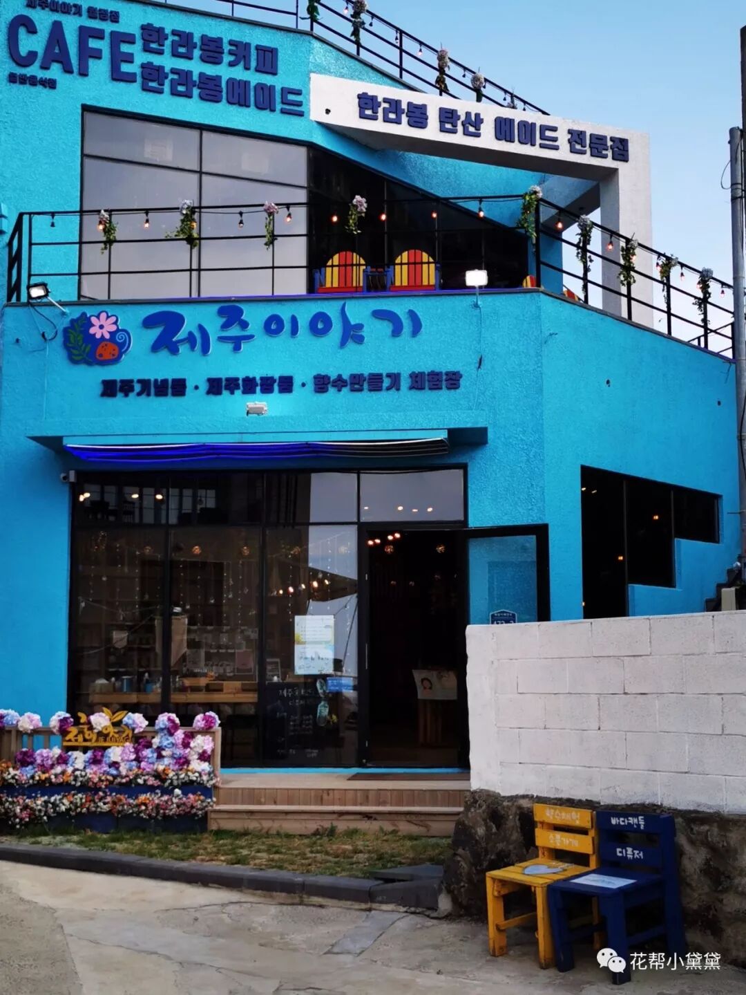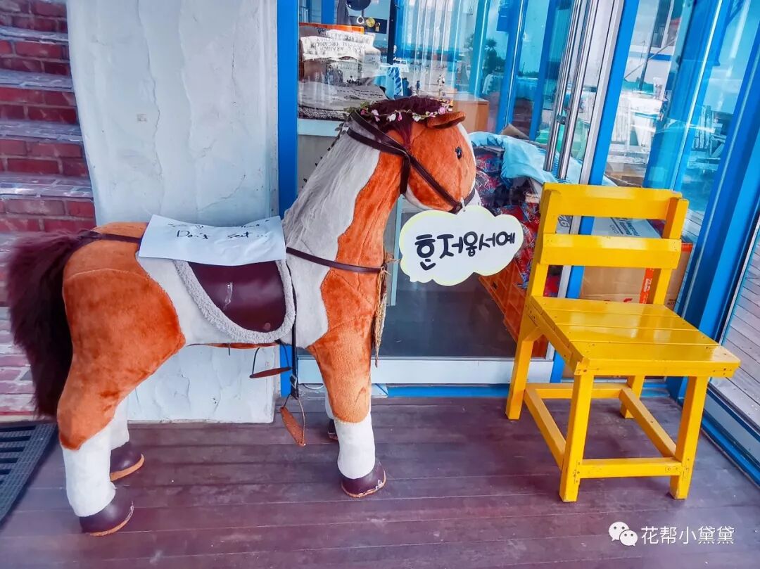 涯月邑的名字很好听也很美,汉潭海边十分清澈且美丽的海域,看起来彷彿是三种颜色,有着数不清的可爱Cafe,据说李孝利隐退后就住在这里,来涯月邑主要为了打卡这家网黄柯基咖啡馆-春日咖啡(봄날카페/BOMNAL cafe)。