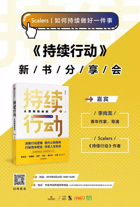 今天下午在北京,《持续行动》新书分享会,李尚龙老师也会来。欢迎来玩,我们见个面!如果你来了,记得和我打声招呼。详情见下方。