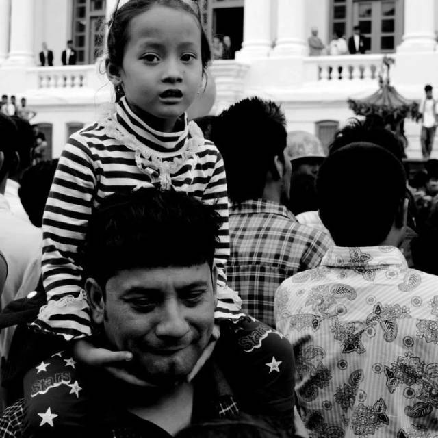 我们在为生活奔波忙碌,害怕中年失业而阶层跌落,忍受无休止的996加班,没时间照顾孩子的时候,小女孩骑在父亲的肩膀上,参加着盛大的节庆。