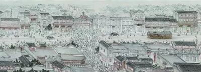 都市中产阶级建筑师为城市规划了理想的形象,规划建设之中的市井生活于是不断地趋近这一形象,这一特质在2007年天安门以南地区竖起的巨大招牌上得到了淋漓尽致的展现。其时,天安门之南的前门地区正经历着大规模的改建,目标是将前门建成新复古风格的多功能区域,而这些大招牌既宣告了正在进行的改建工程,又对建筑工地起到了遮挡作用。在今天的前门历史文化区,往日低矮破旧的房舍已经不见踪影。改建工程有其自身的建设规划理念,工程力图重现1936年北京城的繁荣景象,也就是《天衢丹阙》 中勾勒的北京市井生活。1936年是一个巧妙选择的时间点,在日本占领之前,也在是否“实际存在社会主义”这一棘手问题之前;同时又在中国东部的许多城市经历了文化现代化的冲击与改造之后。在大尺寸数码成像技术的帮助下,建筑遮挡物(大招牌)贴上了巨幅的规划效果图,画面看起来极为逼真。经过数码技术的修饰,前门与天安门地区的街道实景合成到了尚未建成的景观的效果图中,有时人与车看起来就像是悬浮在模拟的人行道之上。“一孩政策”塑造的小型家庭、背包旅行的外国留学生、西装革履的商务人士、结伴而行的妙龄少女、一两个白发苍苍但仍然精神矍铄的老年人……对于这片传统街区里涌现的新式古典建筑而言,上述画面为建筑蕴含的怀旧气息赋予了极具现代感甚至未来感的日常生活色彩。