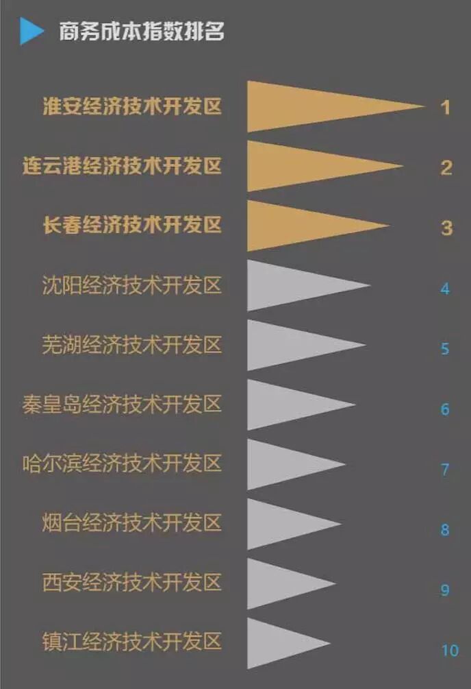 淮安经开区、连云港经开区、长春经开区、沈阳经开区、芜湖经开区得分最高,成本最低