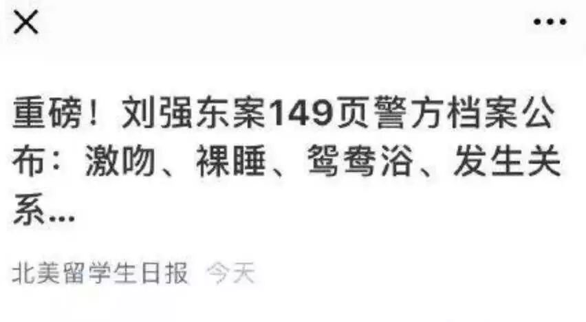 这样的标题已经很明确地告诉你,刘强东不是性侵,是两厢情愿的。而且还揭示了这个论断的证据:警方档案公布的。