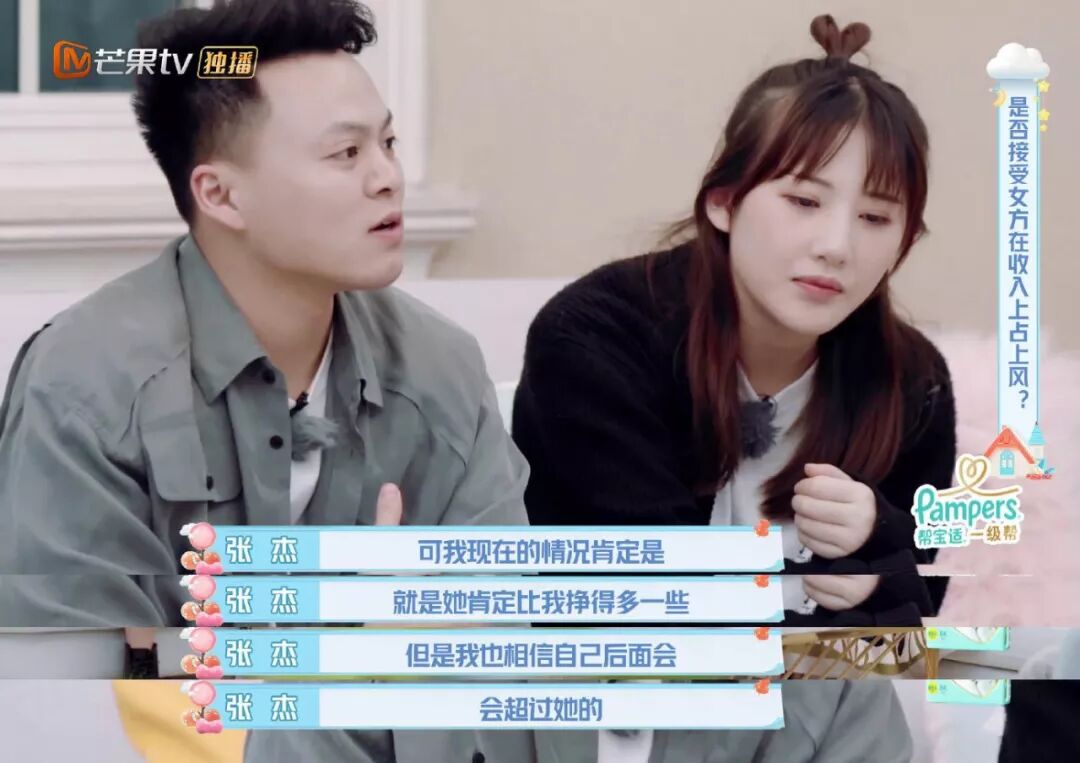 节目里,马剑越的老公张杰被问到:“是否接受女方在收入上占上风?”