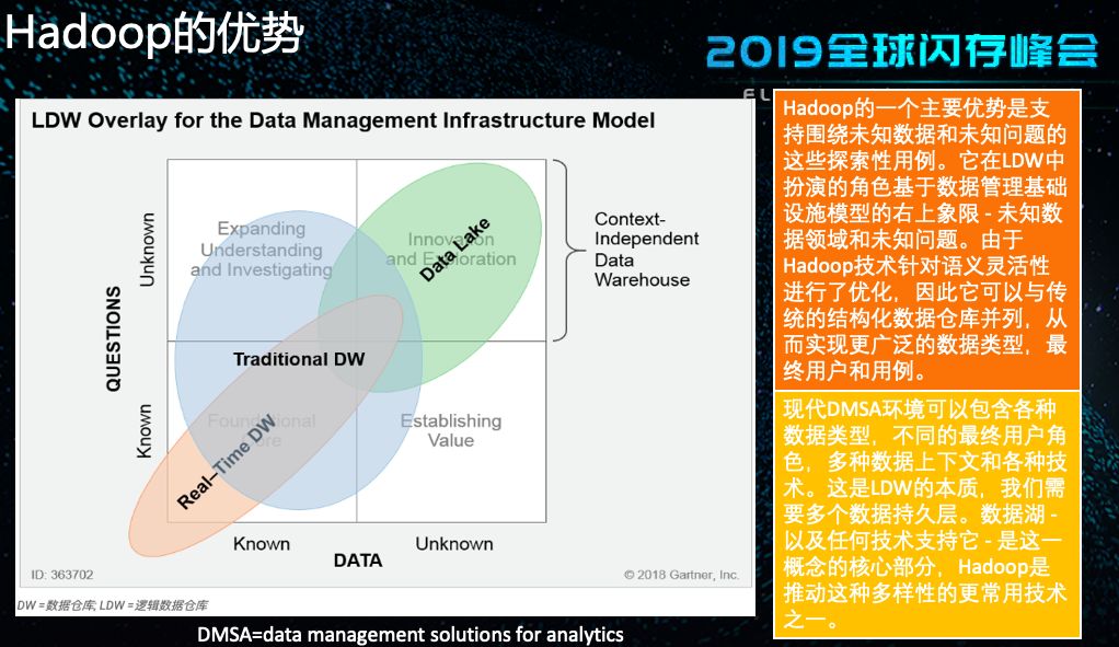 而且,最近的Gartner研究数据表明,Hadoop的部署和需求仍然很大并且正在增长。在最近的一项调查中,有235名受访者表示,34%的受访者目前正在使用Hadoop进行数据和分析工作,另有55%的受访者计划在未来24个月内进行调查,总计达到89%。这是Gartner2016年研究以来的需求大幅增加。