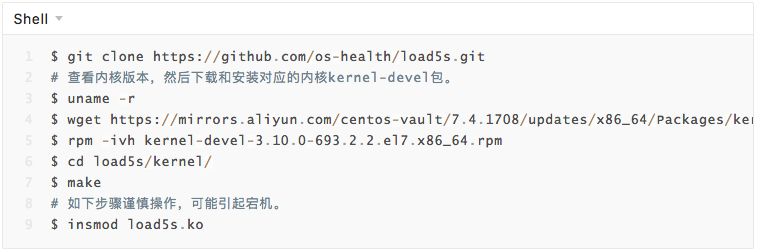 加载load5s的内核模块,即可获取更加灵敏的5秒钟load average(目前已经适配过centos7的3.10.0内核和centos6的2.6.32内核)。具体如下: