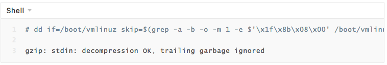 而在此之前有必要先搞清楚内核反汇编的知识。linux启动时加载的内核binary程序存储在/boot/目录中,名称以vmlinuz开头,再加版本号命名。