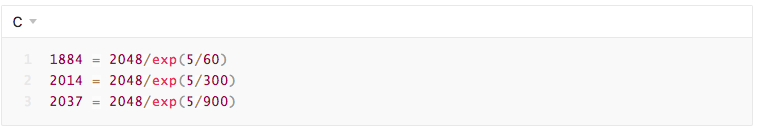 接下来再对load计算过程中的数学问题做一些分析。在前面kernel源码分析部分,我们可以在预编译之后的core.i文件中看到calc_global_load调用calc_load函数时,针对load1、load5和load15,给calc_load的第二个参数分别传入了三个不同的参数值1884,2014和2037。那么这3个值是怎么得来的呢?查看内核源码之后,我们可以发现有这样的计算公式。