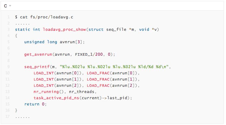很显然具体的load1、load5和load15的值是内核计算之后,通过proc文件系统提供给用户空间的。要深入到内核中查看load的相关代码搞懂load计算过程,也非易事。而真正有个别能看懂内核代码的人分析一下load计算过程的相关代码,广大读者看完之后也还是无从下手。