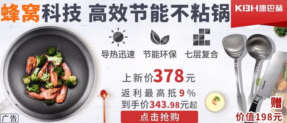 - 有战友怀疑地问,康巴赫蜂窝科技不粘锅有那么神?能做到无油煎鸡蛋不粘?不但不粘,甚至能用嘴把蛋吹起,有网友现场视频: 精品国货!睿意生活馆买即赠价值198元厨具3件套,老用户返利金还可抵9%,第一批已近