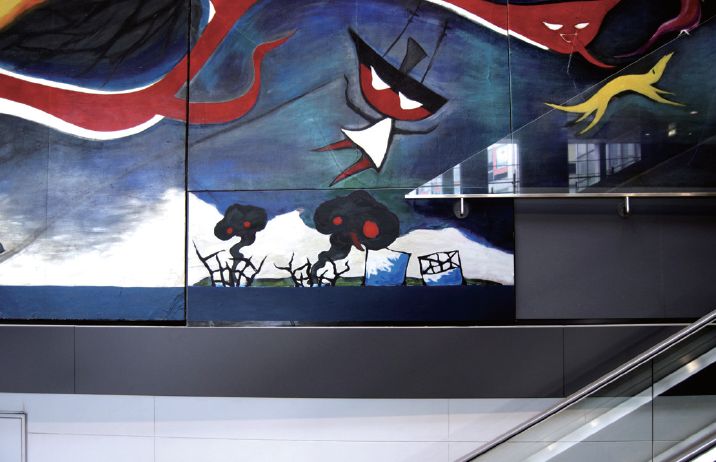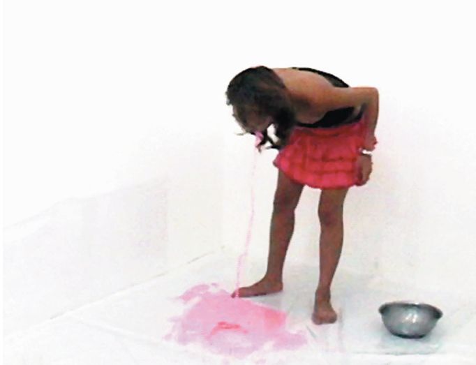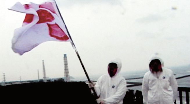 在对「有趣」的追求之中,2005 年,Chim↑Pom完成了他们的第一个作品《呕吐的艾丽》(ERIGERO)。不是绘画或雕刻,而是用他们认为「便宜又简单」的摄像机拍摄的影像作品。镜头下,唯一的女性成员Ellie 喝下粉红色液体再吐出,这一行为反复多次,构成了他们出道作品的全部内容。会田诚看过此影像后表现出很大的兴趣。恰好此时,他接到一个以「粉色」为主题的展览邀请,会田诚觉得比起自己,Chim↑Pom更适合参展,便把他们的作品推荐给策展人。这位法国女性看过《呕吐的艾丽》后说:「这不是艺术。」「不是艺术」,荒诞的是,在这一点上Chim↑Pom自身和外界似乎达成了共识。活动初期,没有学院派背景的Chim↑Pom更多地用「模仿」和「身体」来进行表达。比起方式本身,所传达出的信息才更为重要。比如《呕吐的艾丽》中,被打上「涩谷系时尚女性」标签的Ellie,呕吐的样子很难不让人联想到「催吐减肥」,吐出的粉红色液体正是被男权社会审美绑架的年轻女性的无奈。以此为开端,Chim↑Pom 逐渐确立了社会问题和人生哲学的主题,这种思考从创立最初始终贯穿于Chim↑Pom 的作品之中。「超级老鼠」是日本捕鼠业用语,指因对灭鼠剂产生抗体,在城市爆发性增长的大型老鼠。Chim↑Pom 于2006、2008、2011 年多次在涩谷街头捕捉超级老鼠,将其制成与「皮卡丘」外形相似的形象展出。核电站泄漏事件后,超级老鼠仿佛正是核污染恐怖之下日本民众的缩影。因为人类而被迫进化的老鼠,反被人类捕杀,这种荒诞和讽刺也是Chim↑Pom 想要传达的。继《呕吐的艾丽》之后,Chim↑Pom 发表了一系列惊世骇俗的作品。把涩谷街头老鼠制成皮卡丘形象标本的《超级老鼠》(Super Rat),成员水野与乌鸦老鼠共同生活,最后吃掉或制成标本的《友情?同类相残?两败俱伤?》,成员稻冈在名为《生而为人真不错》的展览期间断食一个月的《The Making of 即身佛》……这些粗粝而过激的尝试,或许是艺术界哗众取宠的常态,永远有人会做得更出格。摄影:梅川良满© Chim↑Pom Courtesy of the artist and MUJINTOProd uction ,Tokyo成员稻冈求进行即身佛实验,减重18公斤,并将自己作为雕刻展示。Chim↑Pom曾说,艺术的醍醐味在于「惊悚」。在这种理念之下Chim↑Pom 不断进行新的尝试,探索着属于自己的「语法」。他们依旧乐于把自己作为媒介,但同时试图把传统的艺术手段与新的表现方式结合。《让广岛上空炸一下》中的飞机云,作品《ellieZABETH》中的地雷,《PAVILION》中PARCO百货商店的标志,《真实千羽鹤》中鹤的标本,乃至向冈本太郎《明日的神话》致敬的画作,Chim↑Pom逐渐找到属于自己的表达方式。不是被传统艺术的招安,也不只局限于身体表达,当初年轻生猛而略显手足无措的Chim↑Pom 变得更加「会玩儿」。福岛核事故之后,Chim↑Pom 在展示于涩谷站的冈本太郎1969 年描写核恐怖的巨幅壁画《明日神话》(明日の神話)右下角的间隙,放上自己的画作的企划。画作为了警醒生活在新时代核恐怖之下的国民,描绘了从原子炉设施中冒出的骷髅形状的黑烟画面。画作采用与原作极其相似的风格,与原作融为一体,甚至一时掀起「莫非冈本太郎预言了福岛核事故」的热议。Chim↑Pom 也因此次事件被涩谷警察厅重点关注。就是这样百无禁忌的Chim ↑ Pom,因为作品《让广岛上空炸一下》,从小众走进大众的视野。让我们来简单梳理下事件经过。2008年10月21日,飞机云在广岛市中心上空写下「ピカッ」字样,引起市民团体和原爆受害者协会的不满。10月22日,此次活动的支持者广岛市现代美术馆馆长及财团理事表示「需要顾及受害者的感情」,Chim↑Pom 与美术馆进行沟通。10月24日,在广岛市政府,Chim↑Pom 队长卯城当面向原爆受害者代表团体商谈并致歉,之后市政府和美术馆也公开致歉。10月25日,Chim↑Pom致歉次日,中国烟火艺术家蔡国强在原爆纪念馆附近的河岸上点燃了黑色的烟火,表达了「对原爆的牺牲者们的哀悼,对和平的祈愿」,此事也在全国范围内进行报道。日本3.11 大地震过去一个月,Chim ↑ Pom 于4 月11 日踏入空无一人的福岛核事故警戒区,登上距离福岛第一核电站约700 米的东京电力展望台,当时的放射量约为每小时199 微希沃特。展望台可以观望到冒着白烟的4 号机和有大量受污染的水排入的太平洋。成员在白色旗帜上,用喷漆画出日本国旗,随后把旗帜上的「日之丸」转变成放射标志,并模仿人类登月时展旗的行为,在展望台展示了这一新的旗帜。当时海内外并没有关于警戒区内情况的报道,Chim ↑ Pom 这次企划有着多重意义。