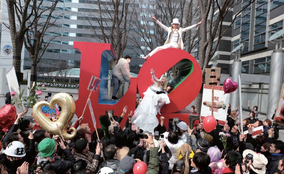 对于电气游行我从来没有满足过(エレクトリカルパレードで満足した事は一度もない)© Chim↑Pom Courtesy of MUJINTO Production,TokyoEllie 的首本写真集《对于电气游行我从来没有满足过》,记录了Ellie 声势浩大的婚礼「Love is over」,聚集了筱山纪信、纪嘉良、森田兼次等摄影家,以及参加者的活动,组成了独具Chim↑Pom 风格的作品。