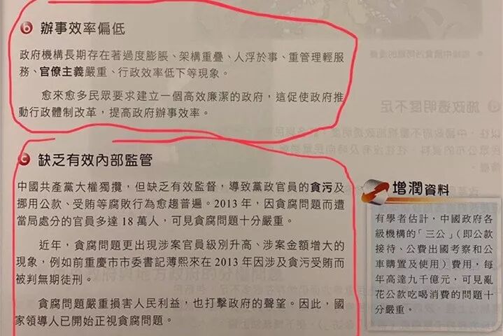3、把中国政府描绘成办事效率低、缺乏监督、腐败横行的形象,如此目的是为了让香港青少年痛恨内地政府。