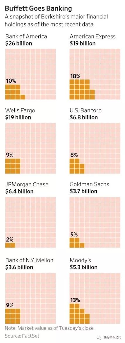 巴菲特的投资主要聚焦于消费品和金融,从总额上,金融板块占比更大,而且伯克希尔哈撒韦也是诸多上市金融巨头的大股东。
