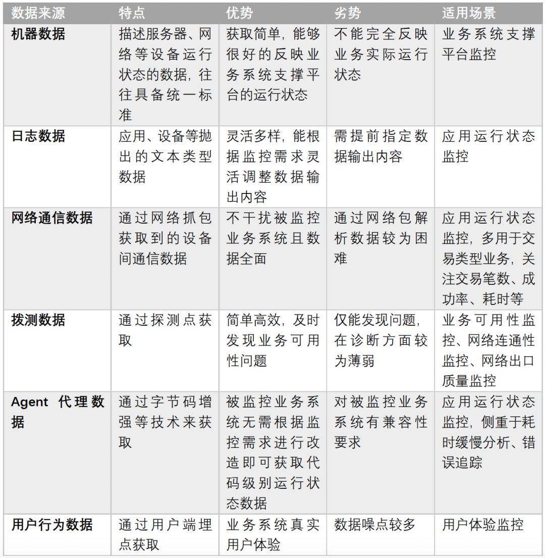 我们从数据来源的角度对监控数据进行分类,比较常用的几种数据来源如下: