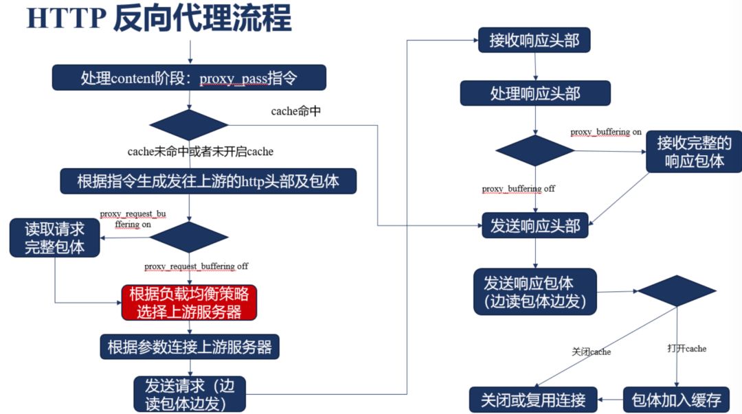 上图是Nginx执行反向代理的流程图,红色是负载均衡模块,任何一个独立的开发者都可以通过开发模块来添加新的LB策略。