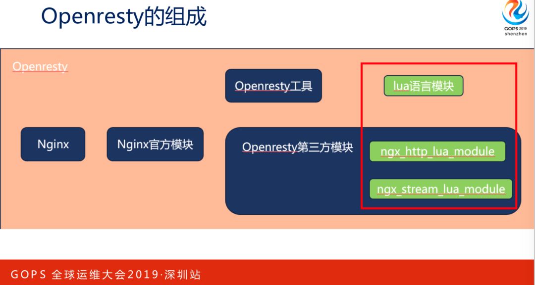 最后我们来谈谈Openresty,它其实是Nginx中的一系列模块构成的,但它由于集成了Lua引擎,又延伸出Lua模块并构成了新的生态。看看Openresty由哪些部分组成: