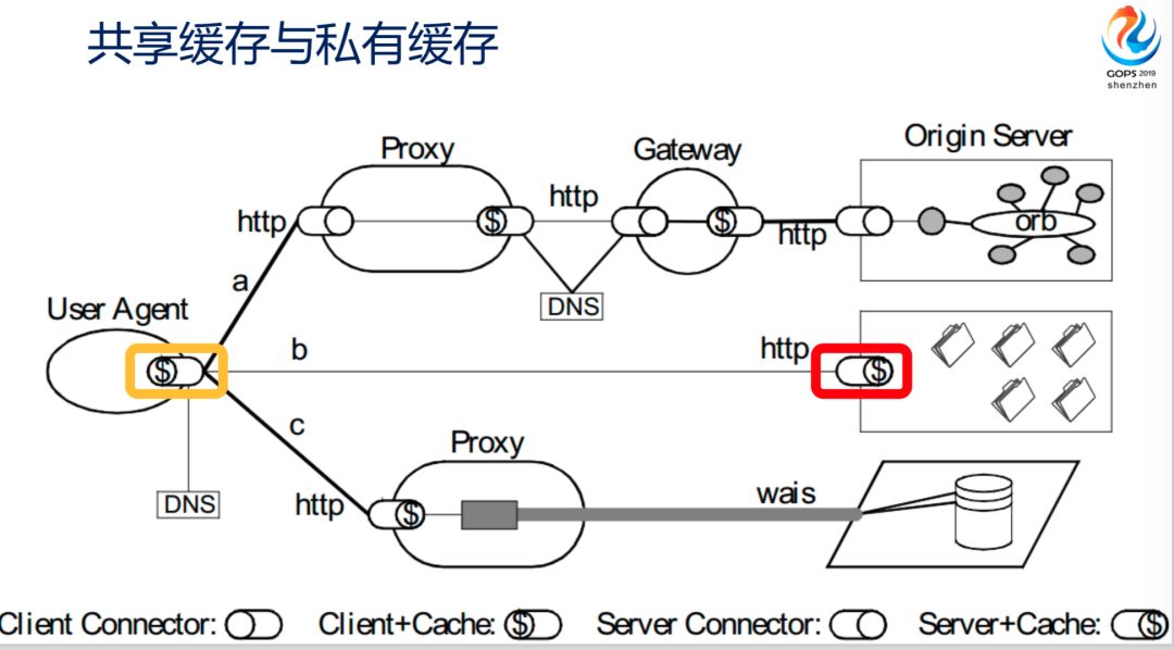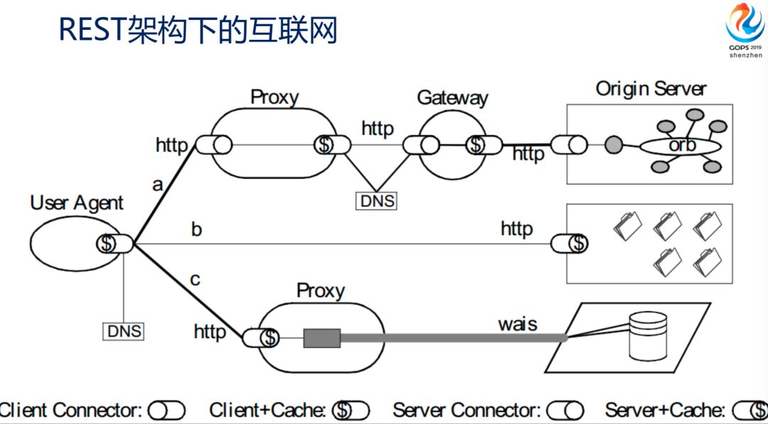 上图是典型的REST架构,图中包括客户端、正反向代理、源服务器,$符号代表缓存可以服务于上游,也可以服务于下游。