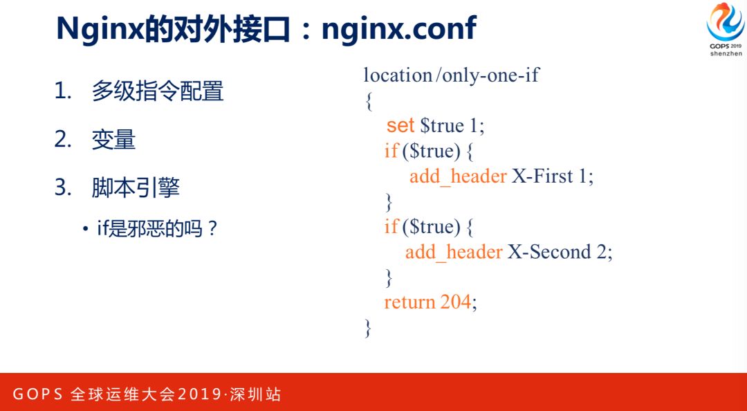 脚本引擎。脚本指令可以提供应用编程功能。很多人说Nginx的if指令是邪恶的,比如上图中的代码,其实我们只有理解if指令是如何影响父子嵌套关系后,才能正确的使用if。在《Nginx核心知识150讲》第141课我有详细介绍。