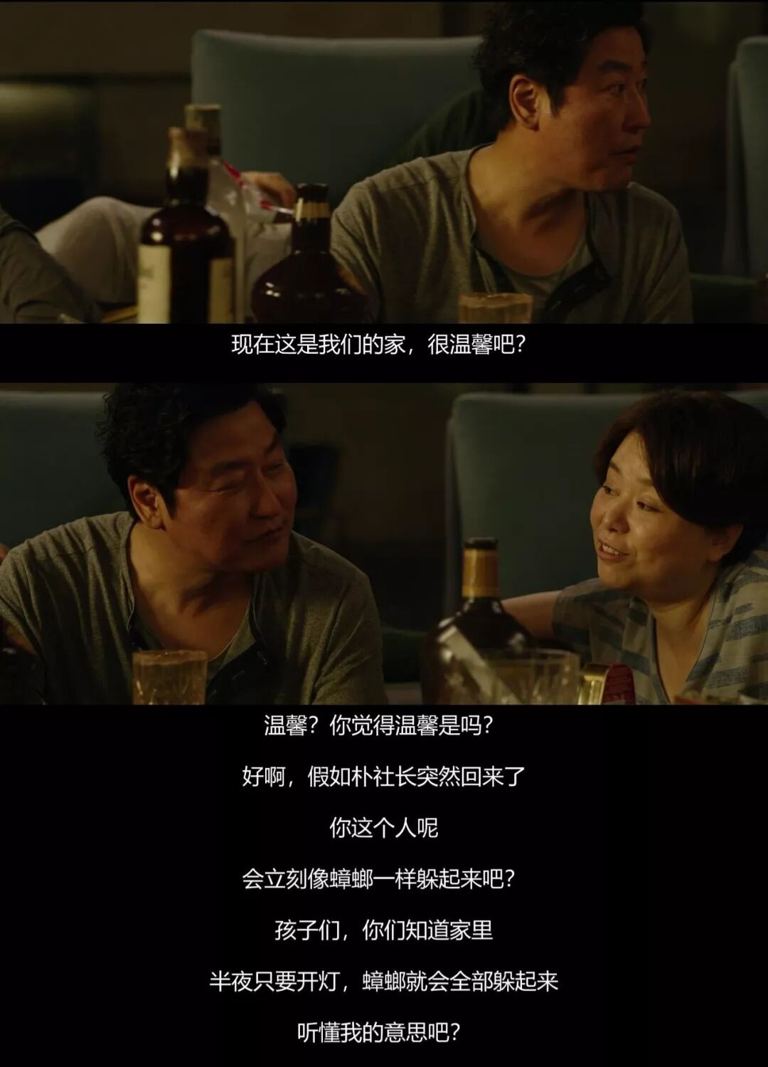 而是乐于跑去朴社长家的豪宅,用他们家的浴缸,喝他们家的酒——因为在他们的潜意识里,他们原本就应该过上这样的生活。