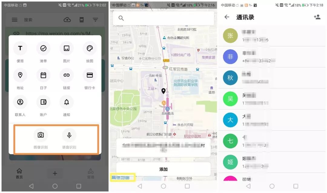 • 导入高德地图API 接口,记录地址也太方便了吧,同样也支持直接导入通讯录信息哦。