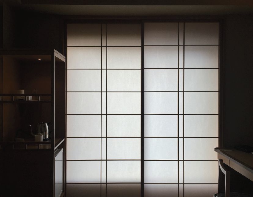 HOTEL NIWA 的经营家族从1935年起就在原址开设旅馆,迄今已到了第三代。而「庭」旅馆则是休业后历经五年构想,融合地域历史与文化,于2009 年再次面世。把「和风」特色融入在现代的设计中,像是大厅里透过和纸纹理散发柔和光晕的光柱,犹如一盏放大版的现代行灯。在灯的另一面则是一扇扇落地玻璃窗,窗外是静立的茂密树丛,白天则与自然光调和出不同的光影风景,也间接隔绝了街道上行人往来的视线。