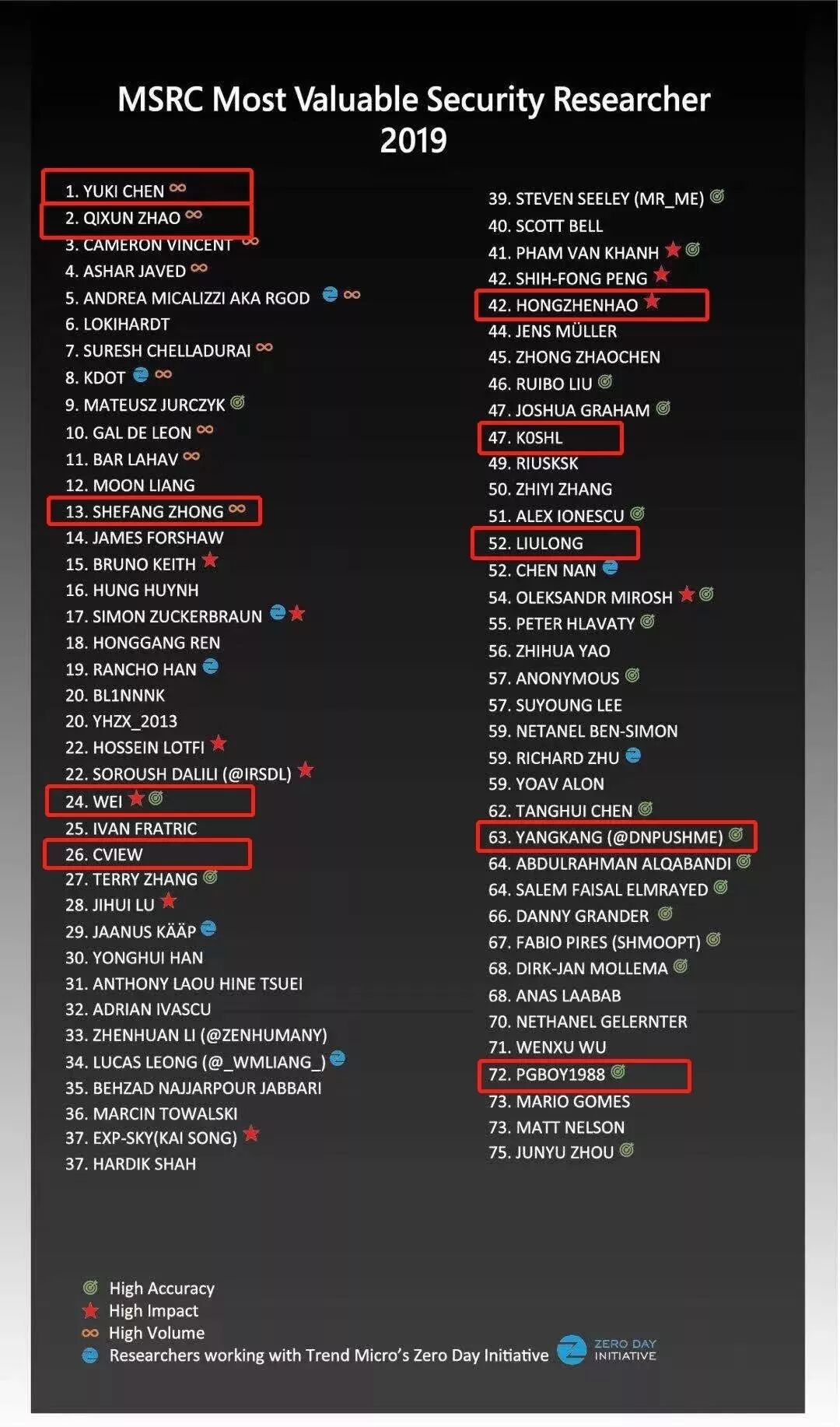 近几年的MSRC百强榜单中,360的白帽子黑客都有多人入选,但榜单前列仍是由国外大神牢牢垄断,但今年形势却发生了惊天逆转!