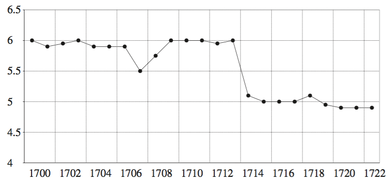 图一 豪尔银行1702-1725年的利率中位数