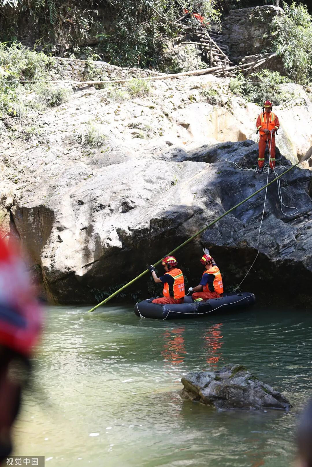 鹤峰县消防中队到达后约两个小时,包括恩施市和周边市县的消防救援力量也陆续抵达现场,总共14台救援车辆,155名救援队员开始拉网式搜救。现场游客向他们确认,峡谷深处还有20多人被困,但舟艇机动设备在峡谷里无法施展,水势依然汹涌,皮划艇和木船也无法进入。