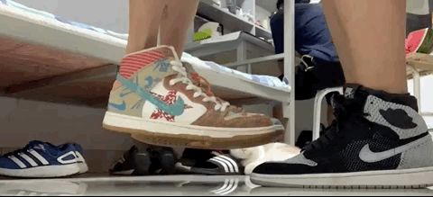 人太多,她不小心踩了我一脚,我穿着 AJ 也痛到摇摇欲坠。