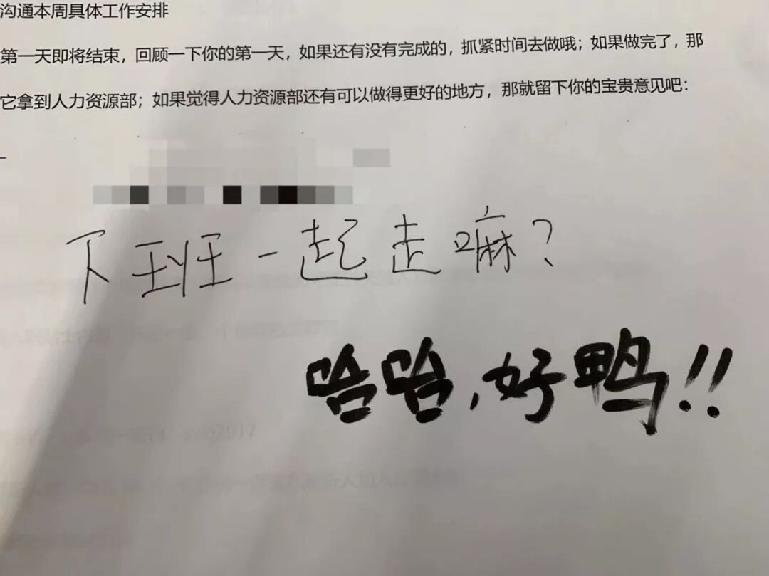跟女朋友在一家公司,快下班的时候突发奇想,给女朋友传了张纸条,说: