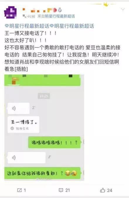 更加离谱的是,有一些粉丝打完电话之后,还发微博发朋友圈炫耀,沉浸在爱豆接了自己电话的喜悦兴奋中,完全把王一博此刻的无奈与烦闷丢到了一旁。