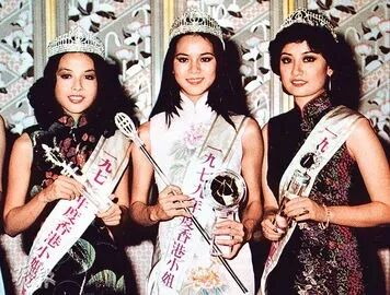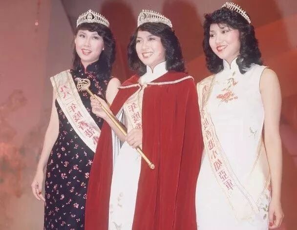 ▲82年香港小姐,冠军梁韵蕊(中),亚军邝美云(右),季军寇鸿萍(左)。这一年的三甲真是齐齐整整,后来全都进了商界了,梁韵蕊做地产,邝美云是珠宝大亨,寇鸿萍做了保险。这一年参选的还有一个大名鼎鼎的女孩儿,叫翁美玲。