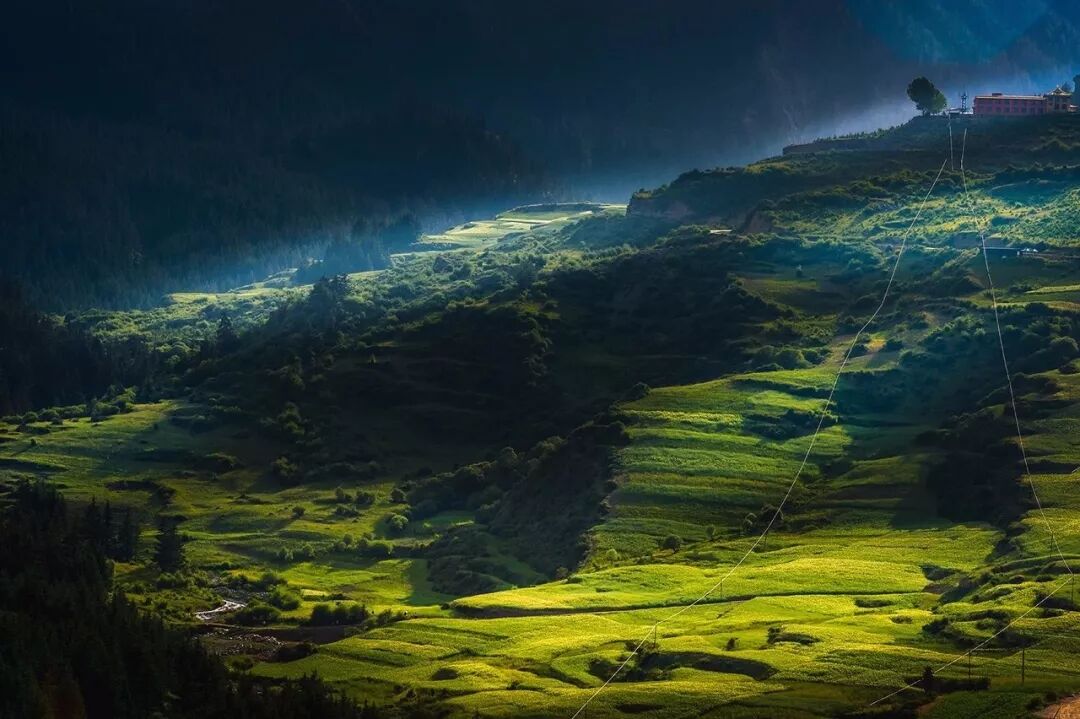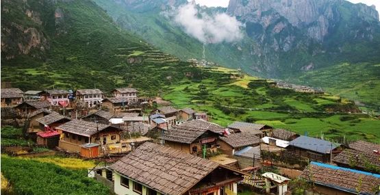 这个崖壁包裹中的一个藏族小村寨,见山是山,见云是云。藏民们淳朴的耕作在田间,安静而美好,就像一幅流动的画卷。
