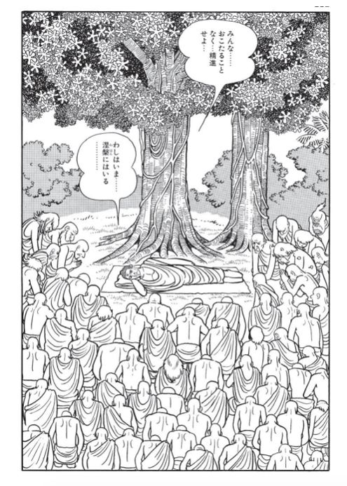 谈到日本漫画就绕不开手冢治虫。作为多面手,手冢也创作了一部描绘佛教创始人释迦牟尼人生经历的漫画作品,《佛陀》 。这部作品连载于1972 年至1983年,2010 年单行本累计销量突破2000 万册。海外评价很高,曾经获得美国埃斯纳漫画产业奖 2004 年及2005 年的最优秀国际作品奖。2010 年7 月以「手冢治虫的佛陀」为名,改编为三部曲式的动画电影。2011年第一部上映。漫画中的出场人物并不都是真实存在的,有一些是手冢原创的角色。这部作品最开始是作为《火鸟》的一个章节而创作,原名为《火鸟· 东洋篇》。因为这个缘故,有若干登场人物在两部作品中都有出现。